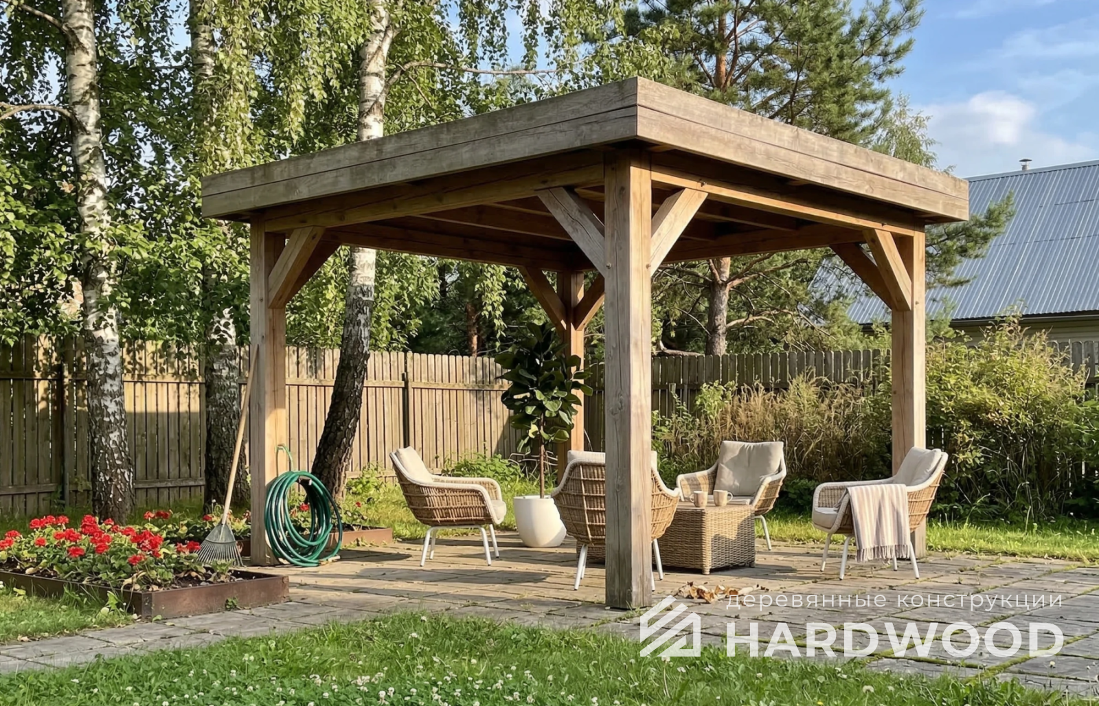 Бесплатно доставим и установим деревянный навес с гарантией прописанной в договоре